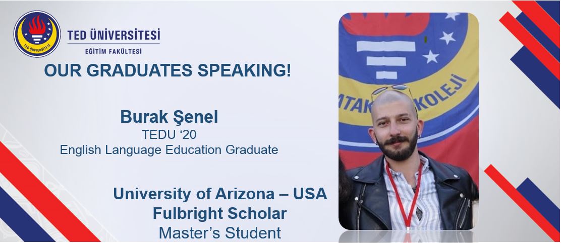 I am now graduating from TED University. I remember I came here to learn more about English teaching to be able to share my passion with others. I remember how happy I was to see that my professors were people who came here to share theirs. I am leaving here with memories dear to my heart. My next stop is University of Arizona. I hope to represent my department with what I was equipped with: compassion, patience, and a zest for learning!