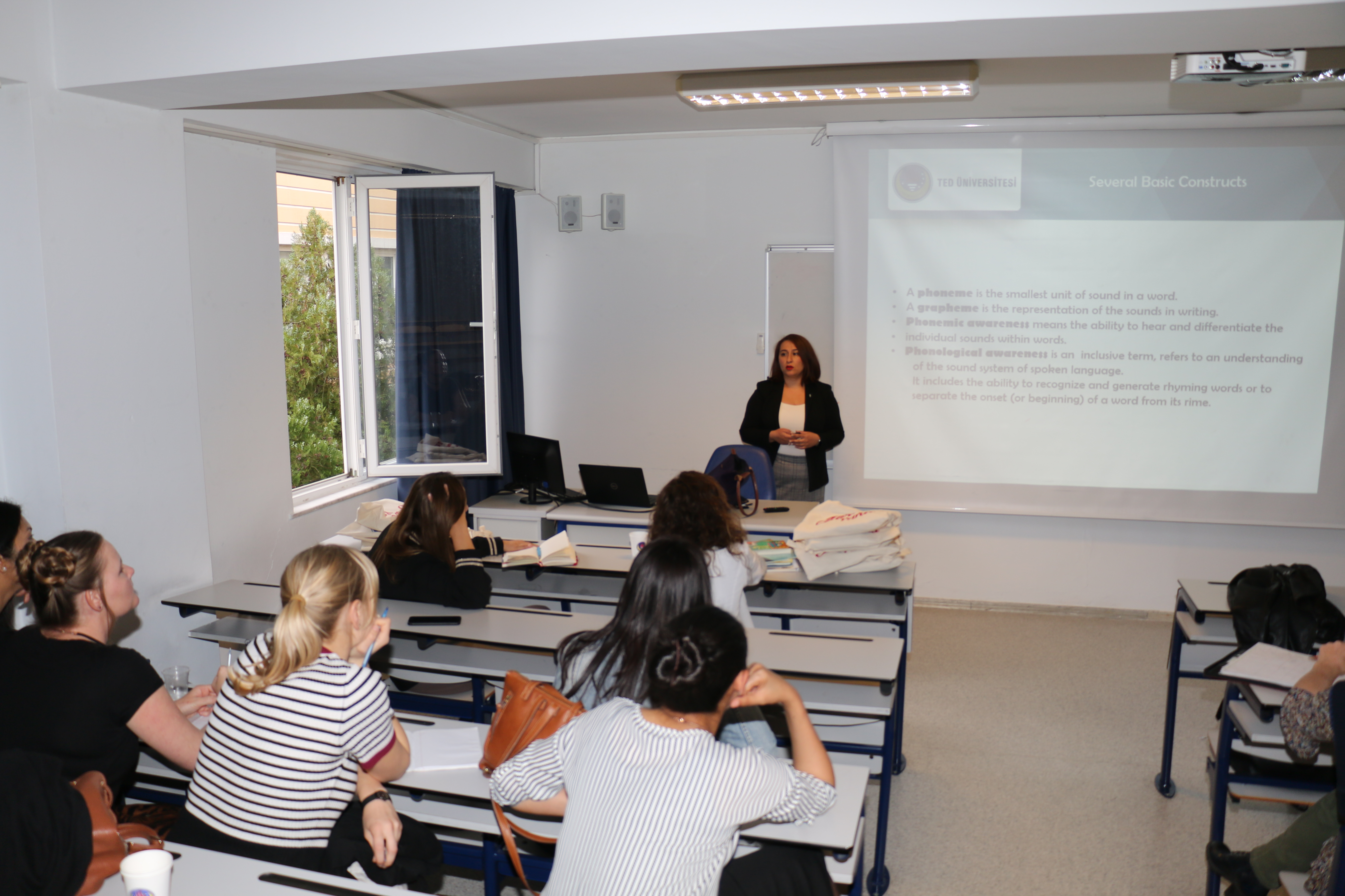 İngiliz Dili Eğitimi Anabilim Dalı öğretim üyesi Dr. Öğrt. Üyesi Melike Ünal Gezer, TED Antalya Koleji okul öncesi ve ilköğretim kademelerinde İngilizce eğitimi veren öğretmenlere ‘’Ses Temelli Eğitim’’ konulu hizmetiçi eğitim semineri vermiştir.