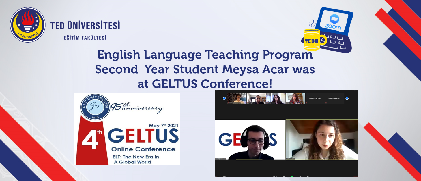 İngilizce Öğretmenliği Programı 2. sınıf öğrencimiz Meysa Acar bu yıl dördüncüsü düzenlenen Gazi English Language Teaching Undergraduate Student (GELTUS) konferansında “Know-hows of Online Teaching from a Prospective Teacher” başlıklı çalışmasını sunmak üzere kabul almış ve 07.05.2021 tarihinde sunumunu gerçekleştirmiştir. Öğrencimizi tebrik eder, başarılarının devamını dileriz. Çalışma özüne ulaşmak için tıklayınız (Sayfa 13).