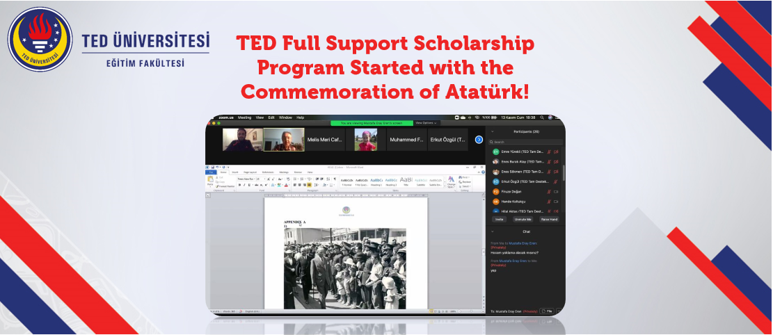 The 2020-2021 academic year of English education program of the Full Support Scholarship Program, carried out by the Turkish Education Association (TED), started with the first Atatürk-themed online courses on 10 November. In the program, which will be carried out online in the fall due to the pandemic, 9th, 10th and 11th grade students studying at high schools in Ankara, Kayseri, İzmir, Malatya and Diyarbakır have had the opportunity to come together in English lessons coordinated by the Department of TEDU English Language Teaching.