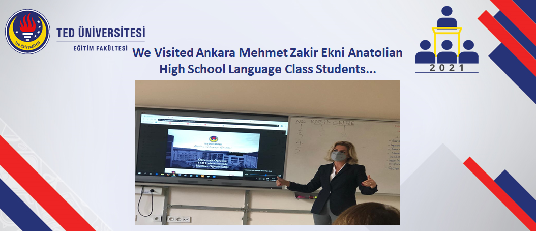 As part of our promotional activities, we visited the foreign language class of Mehmet Zakir Anatolian High School. During the visit taking place with the participation of 12th grade students, English teacher and Guidance teacher, Dr. Özlem Canaran made a presentation about TEDU English Language Teaching Department and answered the questions of students and teachers.